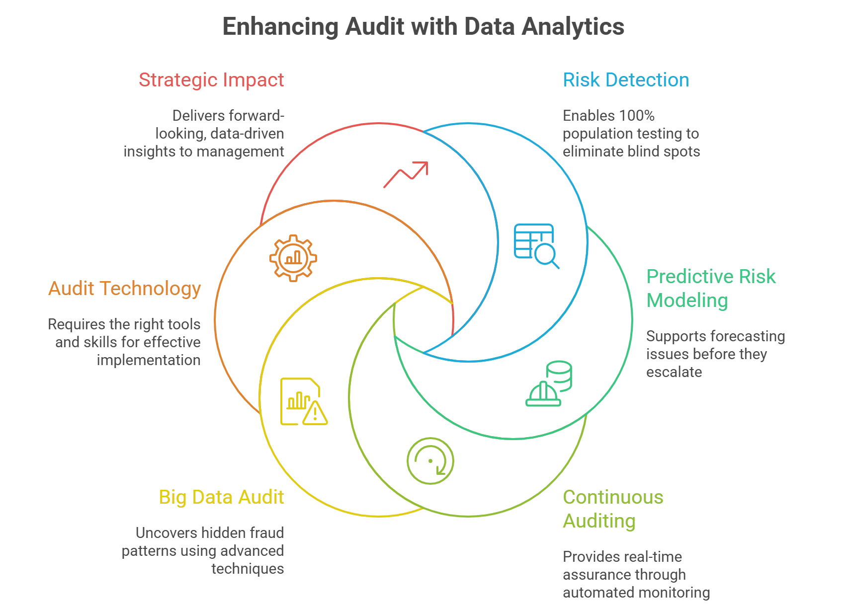 - Data Analytics in Audit enables 100% population testing, eliminating sampling blind spots and improving Risk Detection.